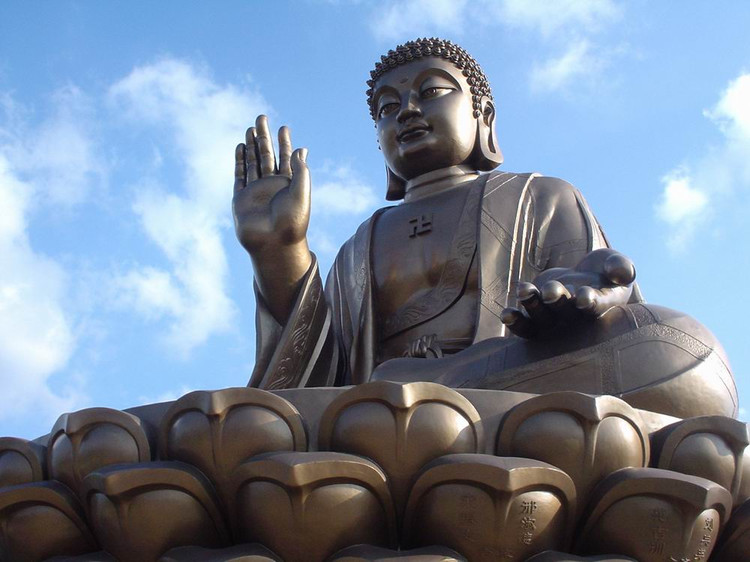 香港的天坛大佛,释迦牟尼座像,锡青铜材料,通高26.4米,重220吨,公元1993年建成。天坛大佛座落在香港大屿山海拔520米的昂平,是香港受欢迎的旅游景点之一。是全球最大的青铜座佛。佛像坐在268级的石阶上,端坐的佛像庄严肃穆,无论远观近看,都予人宁静祥和的感觉。美国权威地理旅游杂志《国家地理旅行者》极力推荐天坛大佛这项名胜。