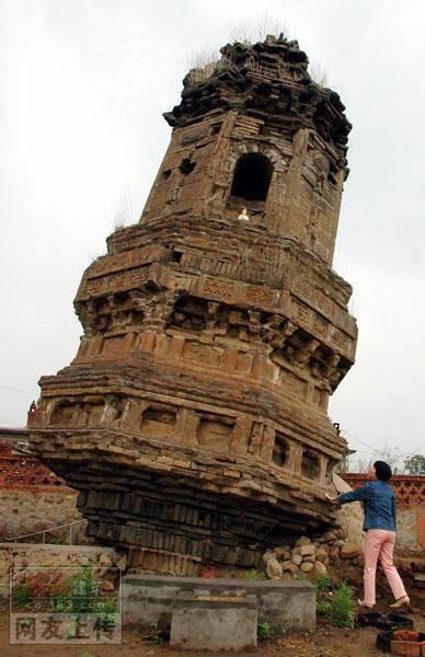 1.绥中斜塔:绥中斜塔位于辽宁省锦州市绥中县前卫镇古城东隅,建于辽代,塔身呈八角形,用青砖砌成。现存三级,高约9米,雕有各种精美的花纹,虽经千百年风雨侵蚀,仍清晰可见。相传此塔建成后不久,由于地基下沉,开始逐渐倾斜。数百年来,虽几经地震与洪水的侵袭,却始终斜而不倒。经测量,此塔目前的倾斜度已达12.01度,可列世上斜塔之最。