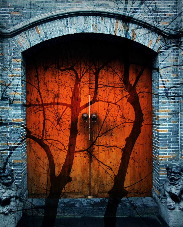 胡平华---古宅春秋。作品拍摄于四川成都锦里,门口的两个石狮的图片和当天拍摄的枯树枝的图片通过叠加和调色的手法合成了这幅作品,演绎出历虽经风雨却仍魅力依旧的古宅风貌。